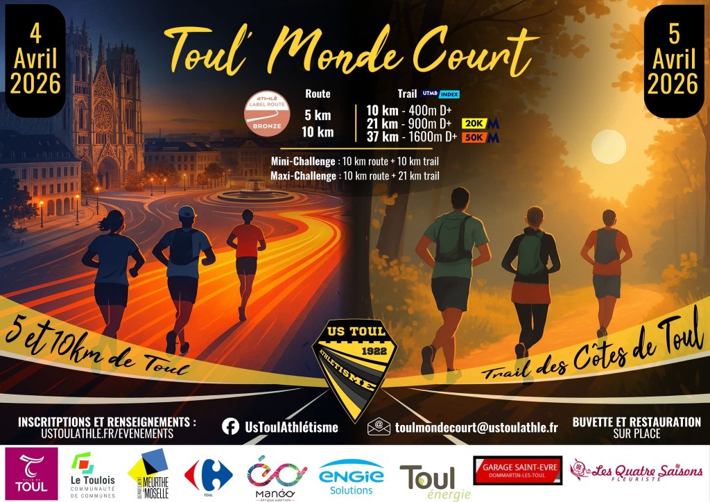 Chaque année, la ville de Toul accueille un événement incontournable pour les passionnés de course à pied : un week-end sportif combinant courses sur route et trail, avec les épreuves de Toul’Monde Court et du Trail des Côtes de Toul.