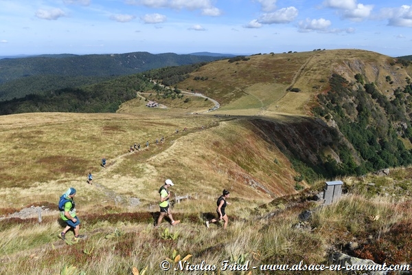 Parcours exigeant avec une succession de montées descentes entre le Markstein et le Lac Blanc, offrant de magnifiques paysages sur les Vosges et la plaine d’Alsace.