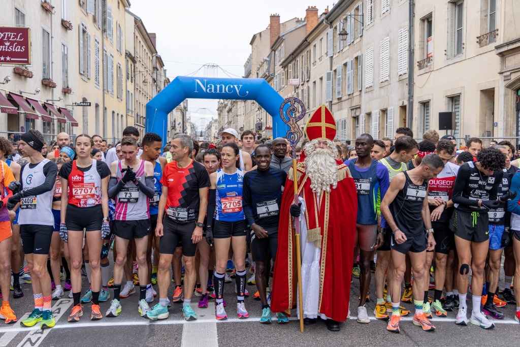 Bien évidemment le saint Patron protecteur des Enfants et de la Lorraine était présent pour lancer cette course à travers les rues de la Cité Nancéienne.