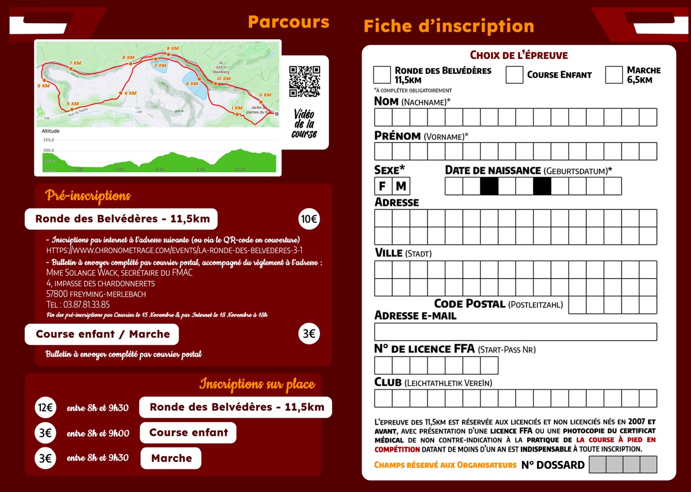 Merci de joindre un chèque de 10€ par inscription à l’ordre du FMAC