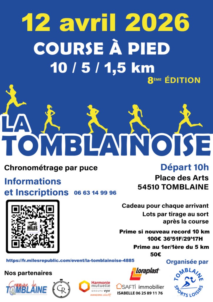 Le dimanche 12 avril, la commune de Tomblaine accueillait une nouvelle édition de la Tomblainoise, rendez-vous incontournable pour les amateurs de course à pied de la région. Organisée dans une ambiance conviviale, l’épreuve a une nouvelle fois rassemblé de nombreux coureurs venus se mesurer sur des parcours accessibles et roulants le long de la Meurthe.